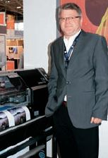 Зам. генерального директора партнёра Durst в России «Сайн-Арт» Никита Клушин отметил оживление рынка в этом году — уже продано 9 принтеров, тогда как за весь прошлый год — только 3. Среди тенденций он видит рост интереса к печати по гофрокартону (две из проданных машин оснащены этой опцией, она же показывалась на выставке) и специфическим приложениям, подобным термоформовке. Стенд EFI располагался так, что миновать его было невозможно. Впрочем, и не стоило — премьер оказалось немало. Специально для EFI VUTEk GS3200 разработана система автозагрузки и выгрузки материалов MediaLoader (150 000 евро). Камера на подаче автоматически корректирует область печати, в принтер можно загружать сразу несколько листов, скорость печати с такой опцией на выставке — 84 м2/ч. Рулонный QS3250r модернизирован — улучшена протяжка, добавлено охлаждение печатного стола. Улучшена и планшетная GS3200. Размер капли головок от Seiko Instruments — 12 или 24 пл. Расширен выбор режимов печати, срок службы ламп увеличен до 1500 ч, есть другие улучшения. Макс. скорость 223 м2/ч. За последний год продано 80 таких принтеров.