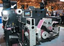 Типичная система для обработки рулонов, отпечатанных на рулонных этикеточных ЦПМ. Эта от ABG была установлена на стенде HP. Аналогичные решения можно было увидеть у Xeikon, Epson и др. Как правило, выполняется УФ-лакирование, высечка, удаление облоя и разделение на ручьи. Цена подобных узкорулонных решений — от 200 000 евро.