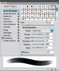В новой версии предпринято очередное наступление на программы для digital painting — электронной живописи и рисования. В дополнение к традиционным теперь есть и принципиально новые кисти, с настройкой параметров… ворсинок. Варьирование их длины, плотности и толщины меняет характер мазка, оставляемого кистью. В графических планшетах она будет реагировать и на угол наклона стилуса — как настоящая.
