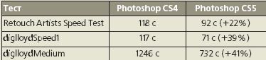 Все тесты проводились, когда на компьютере запущено несколько программ. Результаты неплохие, но по ощущениям от работы в двух версиях мы пришли к парадоксальному выводу — на медленных компьютерах прирост производительности довольно существенный, а на мощных разница с CS4 практически неощутима. К тому же пока CS5 (по крайней мере, на Mac) работает нестабильно и за время тестирования несколько раз приводил к полному «зависанию» компьютеров.