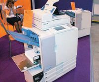 Впрочем, начинающим с цветных лазерных принтеров формата А3 часто приходиться делать на них всё — от бланков и презентаций до визиток и папок. И здесь себя отлично зарекомендовала представленная «Комлайн» модель Xante Illumina 502 — она уже не первый год остаётся рекордсменом по максимальной запечатываемой плотности (до 502 г/м2) и формату (327´1200 мм). Другая машина со стенда «Комлайн» — Presstek 52DI — оказалась единственной офсетной на выставке. Оправдывает её появление в экспозиции лишь явный фокус на оперативной печати — DI-технология экономит время и место, позволяет работать с машиной почти так же просто, как с тонерными системами.