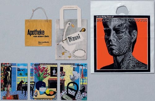 В 70—80-е, а кое-где даже в начале 90-х, когда поп-арт и коммерческое искусство черпали вдохновение друг в друге. На многих пакетах красовались репродукции из поп-арта. Такие изделия привлекали внимание, и люди охотно их носили. Я частенько подходил к незнакомым людям и беседовал с ними о пакетах, которые видел у них в руках.