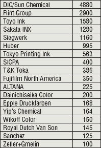 На текущий момент список ведущих поставщиков красок для полиграфии с продажами не менее 100 млн долл., по оценке издания, выглядит так (в млн долл.).