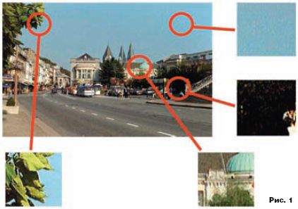 Взгляните на изображение (рис. 1). В нём есть области, требующие различных методов обработки: мелкие элементы (листва, здания) требуют повышения чёткости, небо — наоборот, имеет небольшую зернистость (шум), которую желательно сгладить размытием, то же касается и чересчур тёмных участков. Сила применения коррекции зависит от величины общего шума в изображении плюс поправка на естественное повышение его уровня в более тёмных областях.