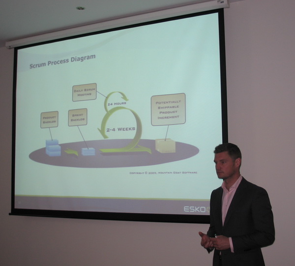 | Б. Виллемс объясняет принцип Scrum Process — новой схемы разработки ПО |