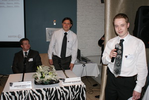| Сотрудники «Ксерокс Россия» в приличествующей случаю чёрно-белой гамме (слева направо): А. Плотников, А. Шалаевский, А. Булгаков |