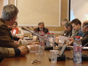 | Круглый стол открыл Советник руководителя Федерального агентства по печати и массовым коммуникациям Владимир Григорьев, который сообщил, что в ЮНЕСКО была подана заявка — сделать 2010 г. годом кириллического шрифта |