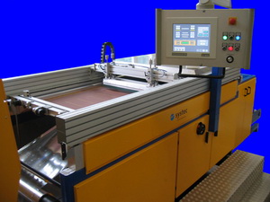 Собираемая под заказ линия шелкотрафаретной печати Spartanics Fineprint Cylinder комплектуется новейшими системами электронного контроля для повышения качества и производительности. Отличительные особенности: работа с любыми материалами, предварительно запечатанными любым способом (флексография, цифровая печать и пр.); автоматическая компенсация растяжения и усадки трафаретной сетки, совместимость с ультратонкими материалами (12 мкм), сохранение в памяти параметров 2500 работ. Оборудование разработано Spartanics совместно с Systec и рассчитано в первую очередь на выпуск высококачественной продукции: RFIВ-этикеток, гибких электронных схем, медицинских и автомобильных люминесцентных панелей, гибких солнечных батарей, текстильных товаров.