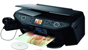 Epson Stylus Photo RX615 (рекомендованная цена 5399 руб.) — МФУ для фотолюбителей с 6-цветной системой печати чернилами Epson Claria. Фотоцентр выполняет печать (в т. ч. на CD- и DVD-дисках) каплями переменного размера от 1,5 пл, сканирование и копирование фотографий и документов. Фотография стандартного качества 10х15 см печатается за 27 с, в черновом режиме — за 12 с, скорость печати документов А4 — 37 стр./мин. ЖК-экран размером 6,3 см позволяет без компьютера просматривать, выбирать и редактировать фотографии перед печатью. Epson Stylus Photo RX615 оснащен разъёмами под все основные типы карт памяти, поддерживает формат PictBridge, bluetooth-адаптер поставляется отдельно. Сканер с разрешением 1200 dpi поддерживает прямое сканирование в электронную почту, PDF и другие форматы (в комплекте ПО для реставрации фотографий). На российском рынке Epson Stylus Photo RX615 появится в августе 2008 г.