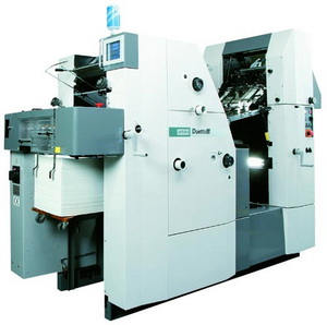 Основные режимы работы регулируются через цветной сенсорный ЖК-дисплей, там же сохраняются в памяти задания. Система управляет красочным и увлажняющим аппаратами, отображает ошибки с рекомендациями по их устранению и техническому обслуживанию машины. Оригинальная опция — второй подающий стапель самонаклада для печати на двух видах бумаги или безостановочной подачи материалов. Подача листа — по узкой стороне с автоматическим равнением, макс. формат 340х445 мм при толщине 0,04–0,03 мм.