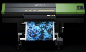Первый в мире печатающий УФ-отверждаемыми чернилами струйный широкоформатный принтер с функциями резки представила Roland DGA. Использующий светодиодные лампы 6-цветный (CMYK + White + прозрачный лак) VersaUV LEC-300 (1440 dpi, ширина 762 мм) запечатывает широкий спектр материалов, включая фольгу, металлизированные и синтетические бумаги, плёнки BOPP, PE и PET. Интересные сферы применения — создание текстурных спецэффектов, в т. ч. имитация крокодиловой кожи и печать шрифта Брайля. Благодаря встроенной функции резки, заявлено об использовании аппарата для выпуска пробных партий этикеточной и упаковочной продукции, изготовления прототипов экспериментальной упаковки. Завершающее нанесение защитного лака повышает стойкость отпечатков к истиранию и воздействию химикатов. Входящие в цветовой набор непрозрачные белые чернила позволяют создавать подложку для последующей полноцветной печати на прозрачных и тёмных материалах. В комплекте растровый процессор VersaWorks 3.0, двухлетняя гарантия. Срок службы почти не излучающих тепло и не требующих времени для разогрева светодиодных ламп 10 000 ч (в 10 раз больше, чем у традиционных). Принтер первым среди печатающих УФ-отверждаемыми чернилами устройств получил сертификат соответствия стандарту Energy Star — он автоматически выходит в состояние низкого энергопотребления при длительном простое. Как подчеркнули представители фирмы, потребляемая устройством мощность 320 Вт намного ниже, чем у конкурентов.