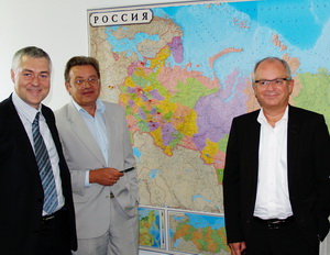 Слева направо: Michael Laursen – менеджер по продажам Schur, Владимир Кретинин – коммерческий директор «НИССА Медиапроект», Knud Eric Rodbro – исполнительный директор Schur