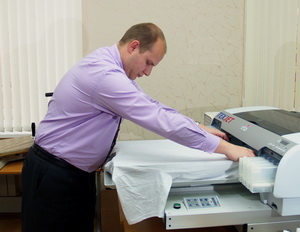 | Алексей Юдин знает: если не разгладить все морщинки на ткани, есть риск некачественной печати и повреждения печатающих головок |