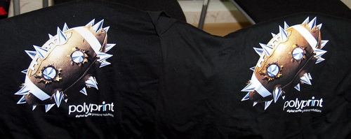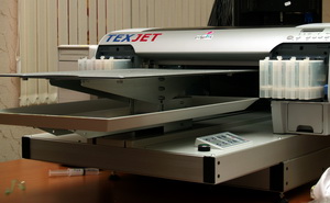«Терем» и «РуссКом-Реклама» предлагают рецепт готового бизнеса — печать на футболках. Менеджер по маркетингу продуктов дивизиона систем цифровой печати компании «Терем» Алексей Юдин представил решение для печати на ткани. Принтер для прямой печати на одежде TEXJET (484 тыс. руб. — все цены, указанные в тексте, действительны на момент подготовки материала) спроектирован специально для нанесения цветных изображений на белых, окрашенных и тёмных тканях. Он создан на базе струйного принтера Epson Stylus 4880; все его основные достоинства сохранены в текстильном принтере. Разработчики постарались внести как можно меньше изменений в конструкцию принтера Epson. По сути, всё свелось к замене тракта подачи бумаги на стол для футболок. Также используются чернильные картриджи повышенной ёмкости. Оптическая система контроля высоты стола подачи позволяет установить оптимальное расстояние между материалом и печатающими головками, предотвращая их повреждение.