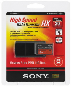 Высокоскоростной съёмный носитель Memory Stick PRO-HG Duo HX от Sony — оптимальное решение для цифровых HD фото- и видеокамер, хранения фотографий, видеороликов, музыки и игр. Флеш-карта объёмом 4 или 8 Гбайт (рекомендованная розничная цена 2730 и 5010 руб., соответственно) обеспечивает скорость чтения до 20 Мбайт/с, записи — до 15 Мбайт/с. Макс. скорость достигается при использовании с поставляемым в комплекте USB-адаптером: в этом случае носитель скачивает данные на треть быстрее, чем Memory Stick PRO Duo (Mark 2). Ещё один полезный бонус — возможность бесплатно получить ПО Memory Stick Data Rescue Service для восстанавлиения удалённых файлов.