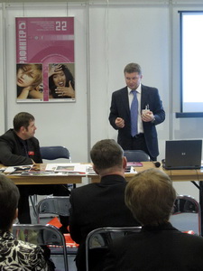 «НИССА Центрум» Урал» представила посетителям форума доклады по цифровой печати и послепечатной обработке. На семинаре «Новые рынки цифровой печати» руководитель направления HP Indigo и Vutek Денис Стриганов остановился на фото-бизнесе, предложив несколько решений на базе ЦПМ HP Indigo и Canon imagePRESS C1. В рамках семинара «Лакировка и препрессовка плёнки, технические решения» коммерческий директор «НИССА Центрум» Урал» Игорь Степанов осветил тонкости односторонней ламинации и отделки готовой продукции, рассказал о новинках оборудования Billhofer и SBL. Руководитель направления департамента цифрового печатного оборудования «НИССА Центрум» Александр Аграновский и руководитель направления Canon, Oce в уральском регионе Игорь Бортников познакомили слушателей с «Уникальными решениями для корпоративной и профессиональной цифровой печати» на примере монохромных ЦПМ Oce VarioPrint 2110, 6250 для печати книг, журналов, инструкций, методических пособий, рекламной и корпоративной продукции.