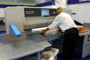 Помимо резального оборудования MZE Maschinenbau производит периферийные системы: стапелеподъёмники, вибросталкиватели, стапеленакопители, транспортные столы, устройства переворота стопы. Гвидо Кербер продемонстрировал возможности резальных линий и дооснащения действующих резальных машин, нацеленные на повышение производительности труда без дополнительной покупки печатного оборудования.
