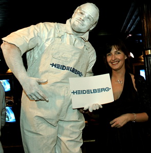 | Генеральный директор «Келла-Дизайн» Марина Дубровская с живой «статуей» печатника |