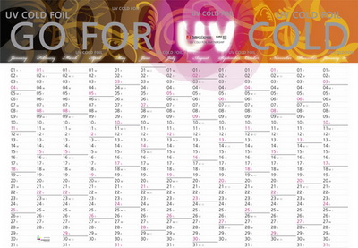 На Drupa-2008 демонстрировался планировщик, отпечатанный в один прогон на листовой manroland 706 LTTLV расположенной недалеко от Дюссельдорфа типографией (образец можно заказать в Kurz и Zeller+Gmelin). При изготовлении использовался клей для холодного тиснения Uvalux U0831 от Zeller+Gmelin, наносившийся в первой печатной секции. Во второй — с помощью специально разработанного офсетного полотна — добавлялась фольга KPS 101039 Silver производства Kurz (плашки и линии), частично надпечатывавшаяся в 3–6 печатных секциях красками Uvalux U73 для листовой УФ-печати. Полимеризацию клея запускал УФ-агрегат после второй печатной секции. Краски отверждались УФ-сушкой в конце печатной машины. Своей задачей поставщики считают законченное решение с адаптированными друг под друга компонентами: специальная фольга для УФ-оборудования, УФ-клей, оптимизированная технология переноса фольги со специальным офсетным полотном, сервисное обслуживание по всему миру и обучение.
