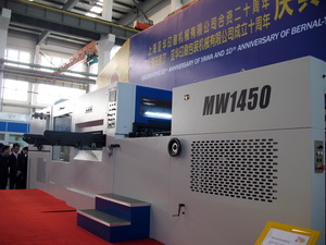 Ещё одна новинка — автоматическая высекальная MW1450. Особенности машины — автоматическая система удаления передней кромки и безрамная автоматическая система смены штампа.
