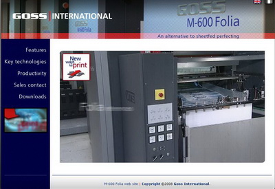 На сайте Goss появился отдельный подраздел, посвящённый рулонным печатным машинам Goss M-600 Folia (www.gossinternational.com/Folia) — с технической информацией, трёхмерной анимацией, статьями и изображениями.