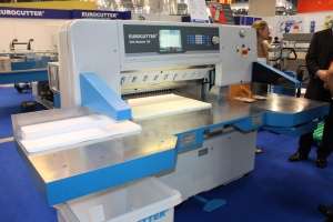 Анонсированный на Drupa-2008 модельный ряд резальных устройств SP заинтересовал посетителей выставки эргономикой и удобством в управлении. Отличительные особенности моделей с индексом М — 10-дюймовый цветной монитор, отображающий все выполняемые на резальной машине операции, плюс возможность составления программ для всех типов резки. Через два USB-порта к Eurocutter SP подключаются клавиатура и мышь, считываются с внешних носителей подготовленные на PC программы реза. Длина реза Eurocutter 920 M SP — 920 мм, длина заднего стола — 920 мм, высота стопы — 130 мм, скорость — 45 цикл./мин.