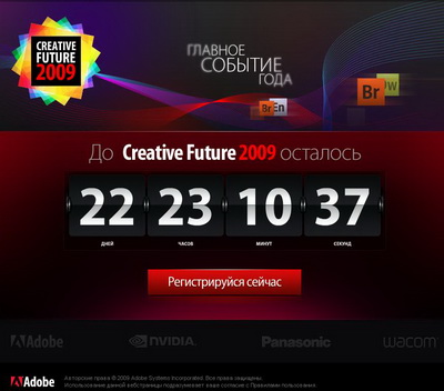 Пятница, 13-ое. Март 2009. В этот день впервые в России пройдёт мероприятие Creative Future 2009, которое объединит людей, с помощью современных технологий делающих мир умнее и красивее: графических и веб-дизайнеров, профессионалов в области видео и анимации, фотографов и издателей. Adobe Systems вместе с Apple, NVIDIA, Panasonic и Wacom соберут в Москве как признанных независимых гуру в области профессионального творчества, так и лучших экспертов по собственным технологиям.