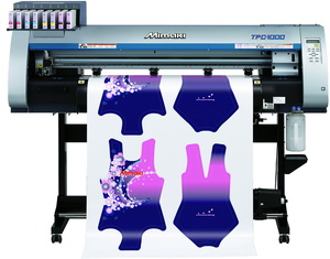 Mimaki Engineering выпустила принтер с функцией резки TPC-1000 на базе машин серии CJV30, работающий с сольвентными чернилами SS21 и сублимационными на основе красителя Sb51. Печать на резине чернилами SS21 используется для нанесения номеров, названий команд и торговых марок на повседневную и спортивную одежду, головные уборы. Сублимационная печать чернилами на основе красителя (с более высокой плотностью и расширенной цветовой гаммой) рекомендована для спортивной одежды, купальников, эко-сумок, тканей.