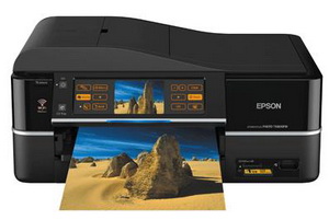 МФУ Epson Stylus Photo TX800FW (рекомендованная цена 15 400 руб.) для печати, сканирования и копирования высокой чёткости — это регулируемая сенсорная панель управления, встроенные функции факса и автоматической подачи бумаги, модуль подключения через Wi-Fi. Объединивший в себе все доступные функции МФУ с высоким качество фотопечати Epson Stylus Photo TX800FW рассчитан на работу с фотографиями и документами в домашних условиях. Разрешение печати — 5760 х 440 dpi, разрешение сканирования 4800 dpi. Фотография 10х15 распечатывается за 10 с в черновом и за 17 с в стандартном режиме, скорость печати документов составляет до 40 стр./мин. А4. Stylus Photo TX800FW работает с водорастворимыми чернилами Epson Claria, поддерживает печать на CD/DVD-дисках.