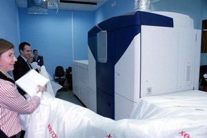 Интересно, что в момент презентации ещё не была полностью завершена подготовка помещения для ЦПМ — не успели поставить и смонтировать систему увлажнения. Из-за этого машине пришлось работать при существенном меньшей влажности, чем заявлено по спецификациям (30–60%). Но продемонстрированные оттиски нареканий по качеству не вызывали. Однако специалисты «Ксерокс Россия» считают обязательным выполнение всех требований к помещению — например, были отмечены случаи, когда бытовые увлажнители и неподготовленная вода приводили к порче дорогостоящего оборудования. В «Эй Пи Трейд» это учли и ждут застрявшую на таможне профессиональную систему…