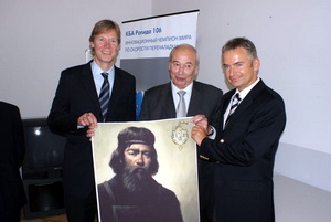 | Р. Заммек, А. Цыганенко, С. Стржельчик с подарком КБА от МГУП: портретом русского первопечатника Ивана Фёдорова |