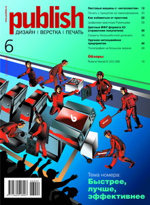 Тема номера – «Быстрее, лучше, эффективнее». Заглавная статья посвящена новейшим достижениям в области автоматизации листовых офсетных машин. Кевин Каллен в статье «Печать с прицелом на ламинирование» даёт советы по подготовке печатной продукции, предназначенной для последующего ламинирования. В рубрике «Расходные материалы» – знакомство с полиэфиром во всём его многообразии. Максим Румянцев рассказывает Publish о результатах своей цифровой «авантюры». Справочник покупателя «Цифроцветомногоборцы» поможет выбрать цветное МФУ формата А3. В рубрике «Рабочий цех» коллеги из Тверского полиграфкомбината указывают на самые частые ошибки в допечатной подготовке книг. «Например» посвящён опыту внедрения новейшей никтошвейной машины Muller Martini Ventura MC в типографии ПИК ВИНИТИ. Андрей Лыгун сделал обзор уникального широкоформатного принтера-каттера Roland VersaUV LEC-300. Олег Давидович в авторской колонке обсуждает проблему простоев и методы её решения. А на последней странице – знакомство с двумя новейшими проектами «Гейдельберг-СНГ» в двух тверских типографиях. Требуйте Publish в сети распространения, но помните – надёжнее подписки ничего нет!