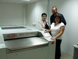 В июне в г. Переславль-Залесский открылась производственная площадка компании Color Standard Service, специализирующейся на изготовлении флексографских печатных форм. В преддверии события специалисты DuPont запустили комплекс формного оборудования DuPont Cyrel в составе комбинированного устройства для экспонирования, сушки и финишинга 1000 ECDLF, вымывного процессора 1000 P, дополнительного устройства сушки 1000 D, системы дистилляции DW100 и устройства цифровой записи форм CDI Spark 4835 от EskoArtwork с производительностью 4 м2/ч.