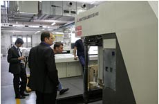 Первой в программе ознакомительного тура была типография GPP с двумя листовыми печатными машинами Mitsubishi, одна из которых — 6HC-6+TC+ED с системой автоматической логистики — введена в эксплуатацию в 2000 г. (формат 1440 x 1040 мм, пробег 250 млн отт.), а вторая — Diamond 3000LC-6+TC+ED UV — инсталлирована в 2003 г. (формат 1020 х 720 мм, пробег 200 млн отт.).