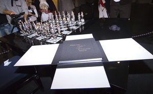 В большом (31х31 см) альбоме, изготовленном типографией «Дитон», подробно рассказывается о проекте и его «героях» — как исторических, ставших прообразами шахматных фигур, так и об авторах и создателях комплекта. «Нашей сверхзадачей было показать то, что обычно зритель не замечает, — говорит Виталий Фейгин, директор Издательского дома «Ацтек», которое более года работало над проектом альбома. — Это не только ювелирные техники — литье, чеканка, гильоше-эмаль, чернь, гравировка, скань, филигранная закрепка камней, но и авторские «придумки», даже своего рода ювелирное озорство вроде пчёл Наполеона, изображенных на обратной стороне сиденья стула французского императора. И сделать это надо было так, чтобы альбом получился на уровне самих «Шахмат», в полиграфическом смысле, конечно». Успех альбома ещё раз подтвердил, что сложные книжные издания и первоклассные высокохудожественные альбомы можно делать не только за рубежом.