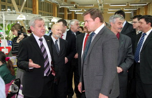 | Евгений Апостол (слева) показывает Городскому Голове Николаю Любимову (справа) производство «Картон-Полиграф» |