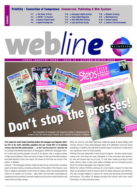 Вышел новый номер журнала Webline, выпускаемого с 2002 г. входящими в альянс PrintCity компаниями — manroland, MEGTEC, Océ, Procemex, Sun Chemical, Trelleborg и UPM. Среди материалов номера: практика печати с добавленной стоимостью, гибридные краски, цифровые газеты, рулонная печать сверхширокого формата, виртуальные тренинги и многое другое.