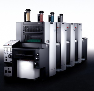 Скорость машины — 15 000 отт./ч, толщина материалов — 0,03–0,6 мм, возможность печати в 4–10 цветов с лакированием и переворотом листа. На выбор предлагается несколько модификаций: УФ-печать с увлажнением, без увлажнения, а также комбинация двух систем.