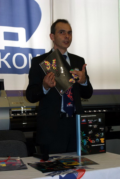 Рассказ о любимом бренде продолжили другие представители «GMP-Русском». Директор Санкт-Петербурского филиала Манолис Сивриди провёл презентацию GMP, обратил внимание на интересные новинки. В последнее время компания уделяет много внимания ламинаторам для салонов оперативной полиграфии и типографий. Промышленные модели оснащены самонакладами, скорость ламинирования достигает 50 м/мин при формате 74х110 см (Pioneer 7000BC). Большинство новых моделей оснащается эффективными ламинирующими зеркальными валами с индукционным нагревом — сокращается время подготовки к работе, расход электричества. Уже начаты поставки УФ-лакировальных машин от GMP форматов А3–А2 со скоростью до 35 м/мин. Вскоре начнутся продажи компактной УФ-машины ImageCoater формата А3 по очень привлекательной цене.