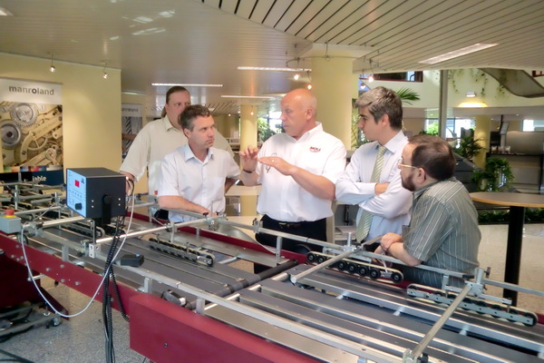В конце июня ведущие специалисты компании «Апостроф» посетили в Бельгии демонстрационный зал Windle+Braam, европейского представителя Moll. Целью поездки было детальное знакомство с возможностями фальцевально-склеивающих линий Moll. Руководитель компании Штефан Виндель подробно рассказал о принципах построения модульных систем Moll, возможностях модулей и дополнительного оборудования. С конструкцией машин сотрудники российской компании ознакомились на примере установленных в демозале популярных линий Regal и Vantage-720. На работающих машинах были показаны варианты изготовления различной продукции — папок, конвертов, коробок.
