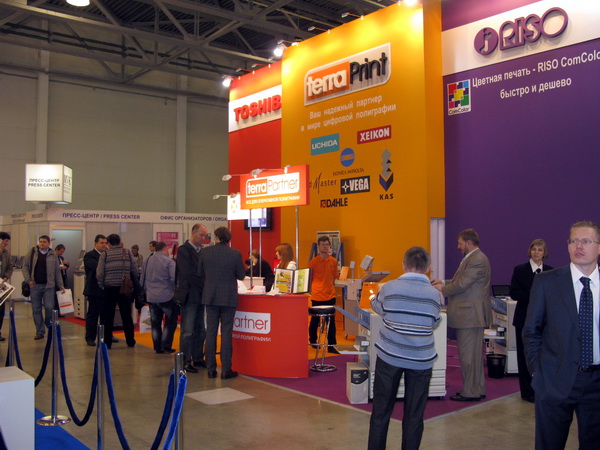 На примере ЦПМ Toshiba e-STUDIO посетителям представили качественную «глянцевую» цветную печать на бумаге Color Copy и Top Style разных плотностей и фактур от компании «Европапир» (большинство заключённых контрактов пришлось на машины этой марки — в т. ч. и благодаря их универсальности). «Гвоздём программы» стала новинка 2010 года от Uchida — универсальный финишный модуль AeroCut  с точностью при резке до 0,1 мм, настраиваемым и практически неограниченным количеством бигов на 1 листе (до 49!) и перфорацией. Целый ряд устройств для денситометрического и спектрофотометрического контроля оттисков подготовила к выставке X-Rite, представитель которой присутствовал на стенде.