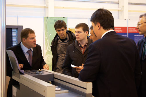 На выставке было представлено более 20 моделей оборудования, среди которых цифровые дупликаторы Duplo U550 (Ultra HDi) и Duplo M300, буклетмейкер Duplo System 3500, который обрёл нового владельца прямо на выставке, принтер для малотиражной прямой цифровой печати по текстилю M&R I-Dot, термоклеевая машина Duplo DB-280.
