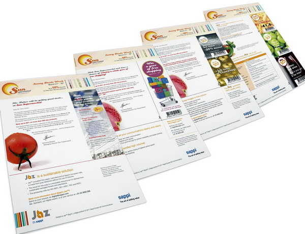Sappi Fine Paper Europe к выставке Hunkeler Innovation Days подготовила премьеру линейки мелованной бумаги Jaz, разработанную совместно с HP для рынка промышленной струйной печати. Jaz silk — мелованная бумага для высококачественной коммерческой продукции и почтовых рассылок, выпускающаяся на фабрике Lanaken в Бельгии. Пока бумага предлагается в плотностях 115 и 130 г/м2. С апреля 2011 г. к линейке добавятся дополнительные сорта — от 90 до 150 г/м2.