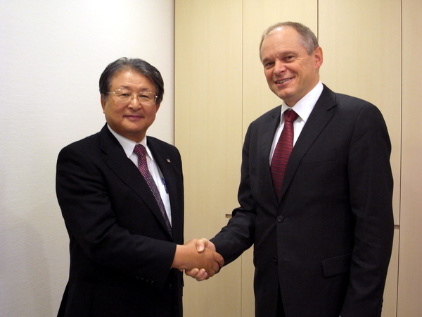 | Ricoh и Heidelberger Druckmaschinen объявили о глобальном стратегическом партнёрстве: Heidelberg становится дистрибьютором линейки промышленных печатных решений Ricoh. Генеральный исполнительный директор Ricoh Широ Кондо (слева) и генеральный исполнительный директор Heidelberg Бернхард Шрайер |