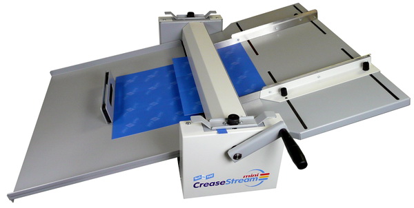 Настольное ротационное устройство от Tech-ni-Fold, по мнению разработчиков, станет более производительной альтернативой педальным системам биговки и конструкциям с опускающейся ручкой. Базовая система CreaseStream Mini управляется поворотной рукояткой, одновременно выполняя 2 либо 4 бига (в зависимости от модификации). Как сообщается, предложенная конструкция отличается отличной приводкой, снимает проблемы растрескивания сгиба и повышает качество готовой продукции. Устройство подходит для бигования фотоизделий, материалов с ламинацией и УФ-лакированием. Сфера применения — поздравительные открытки, меню, обложки для бесшвейного скрепления. Особенность разработки — запатентованная каучуковая матрица, которая плавно растягивает волокна материала, не допуская растрескивания.