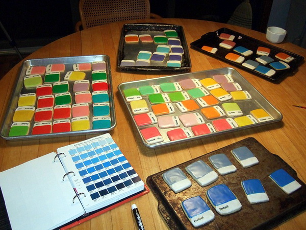 Решив в очередной раз подтвердить истину, что путь к сердцу клиента лежит через его желудок, дизайнер из Чикаго Ким Нейлл вместо традиционных «презентов» на Новый Год и Рождество приготовила для своих заказчиков печенье в стиле Pantone. Идея родилась сама собой — после того, как в одном из магазинов она нашла коллекцию жестяных банок в цветах Pantone.