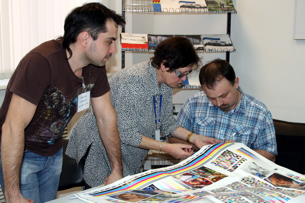 Участники рассмотрели вопросы управления цветом, профилирования устройств, стандартизации ISO и другие темы, актуальные для оптимизации процессов на современном полиграфическом предприятии. Общий интерес вызвала информация о конвертировании файлов, современном ПО для оптимизации параметров CMYK-файлов и управления цветом в процессе подготовки цветопроб.