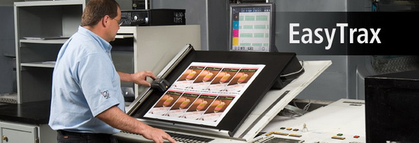 EasyTrax — полуавтоматическая автономная система контроля параметров офсетной печати. Двухкоординатный планшет выполняет точные измерения шкал в любой части печатного листа по денситометрическим и спектрофотометрическим (в модификации Spectral) параметрам. Поверхность измерительного стола удовлетворяет требованиям ISO, скорость считывания составляет 150 мм/с.