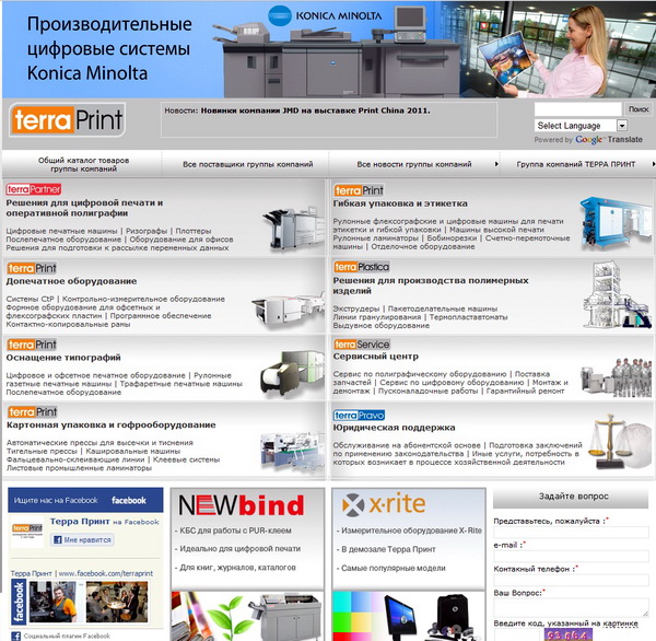 ГК «ТЕРРА ПРИНТ» обновила корпоративный веб-сайт, изменив дизайн основных разделов, сделав удобнее структуру и навигацию. Кроме того, теперь материалы ресурса можно просматривать на 57 языках. Посетители получают прямой доступ к информации компаний, входящих в группу: «ТЕРРА ПРИНТ» (поставки полиграфического оборудования), «ТЕРРА ПАРТНЁР» (поставки решений для цифровой печати), «ТЕРРА ПЛАСТИКА» (комплексы для производства полимерных изделий), «ТЕРРА СЕРВИС» и, впервые, «ТЕРРА ПРАВО» (поддержка юридических лиц на абонентской основе).