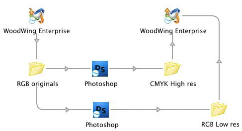 Оценить первые результаты интеграции Switch 10 и WoodWing Enterprise 7 пользователи смогли уже на конференции WoodWing Xperience, проходившей с 24 по 25 мая в Амстердаме. Помимо расширенной автоматизации процессов, связанных с подготовкой публикаций, появилась возможность использовать Enfocus Switch для адаптации материалов. Так, например, Switch может загрузить изображение CMYK в высоком разрешении из Enterprise, изменить размеры на нужные, преобразовать в RGB, а потом отправить его обратно в Enterprise как новый файл. Готовый к печати PDF-файл загружается из Enterprise и перенаправляется на нужное приложение для автоматической предварительной проверки публикаций, оптимизации красок, цветопробы, спуска полос и, наконец, на RIP для вывода печатных форм.